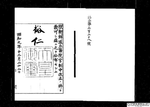 朝鮮道立医院官制中改正・御署名原本・昭和九年・勅令第三三八号