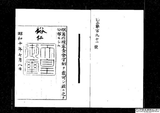 - 著作権審査会官制・御署名原本・昭和十年・勅令第一九一号
