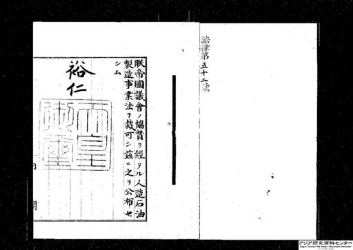 人造石油製造事業法制定石油業法中改正・御署名原本・昭和十二年・法律第五二号