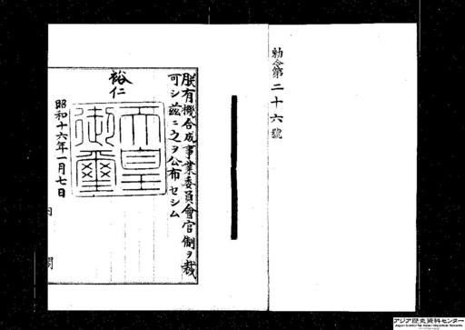 - 有機合成事業委員会官制・御署名原本・昭和十六年・勅令第二六号