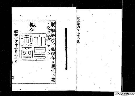 - 船舶防空監視令・御署名原本・昭和十七年・勅令第四三八号