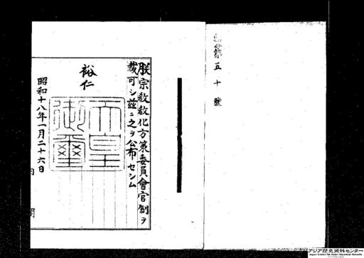 - 宗教教化方策委員会官制・御署名原本・昭和十九年・勅令第五〇号