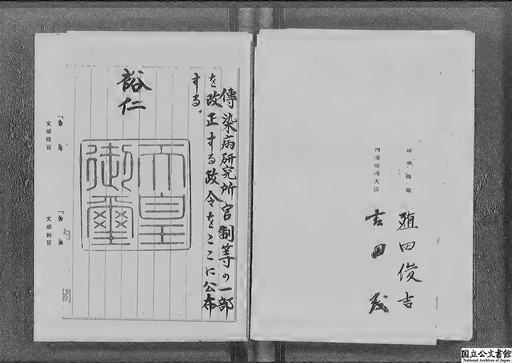 - 伝染病研究所官制等の一部を改正する政令・御署名原本・昭和二十四年・政令第一八号