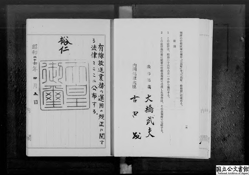 - 有線放送業務の運用の規正に関する法律・御署名原本・昭和二十六年・法律第一三五号