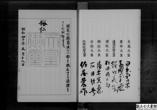 - 国家公務員法の一部を改正する法律・御署名原本・昭和四十年・第四巻・法律第六十九号