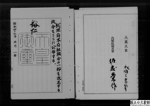 - 総理府本府組織令の一部を改正する政令・御署名原本・昭和四十七年・第七巻・政令第一二二号
