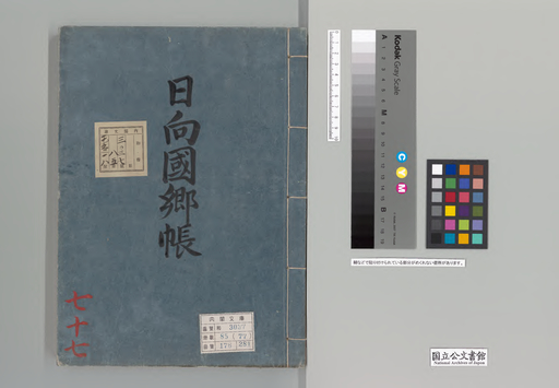 The Tokugawa Shogunate ordered four times in years of Keicho, Shoho, Genroku and Tempo to prepare maps of every "kuni" (country) all over Japan. Preparation of Genroku Kuni Ezu (national land maps) was ordered to be started in the 9th year of Genroku (1696) and completed to cover most of Japan by the 15th year of Genroku (1702).Preparation of Tempo Kuni Ezu was ordered in the 6th year of Tempo (1835) and completed in the 9th year of Tempo (1838). The mapping scale is 1: 21,600 approximately or 1 "sun" (3.3 cm) to 1 "ri" (4 km). Mountains, rivers and roads etc. are drawn on the maps. Black dots along main roads show mile stones. Counties are shown in different colors and an elliptic frame is attached to every village, in which name of village and a yield of rice are written. Box-shaped blank is attached to every castle town and names of city and castellan are written in the blank. Legends showing colors of counties, yield of rice in the counties, number of villages in the counties are labeled at a corner of each map. Names of officials conducted the preparation of maps are also written under the legends. Grid lines are drawn on some of the maps. Land Survey Department reproduced the Kuni Ezu for preparation of new national maps. These maps were used for practical purposes after the Meiji Restoration.The National Archives preserves eight originals and eight reproductions of Genroku Ezu, 83 national maps (119 sheets including duplication) and 12 reduced maps of Tempo Kuni Ezu. These maps and 85 Tempo Go Cho (records of villages) where a yield of rice of every village from Matsumae (Hokkaido) to Ryukyu (Okinawa) is recorded were designated as National Important Cultural Properties in the 58th year of Showa (1983). Tempo Kuni Ezu is drawn on high-quality drawing paper and the map sheets are very thick with multi-layered backing. There are wrinkles and thin spots on the surface caused by folding. The photography was carried out without any modification of the present conditions of the maps, and some of the portions may not be so clear.