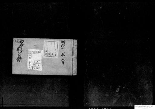 簿冊標題:職員録・明治十二年五月・職員録(勅奏官)改