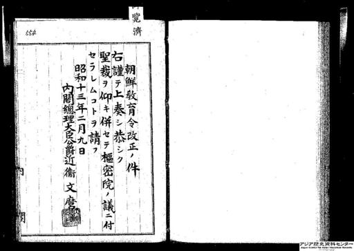件名:朝鮮教育令改正ノ件