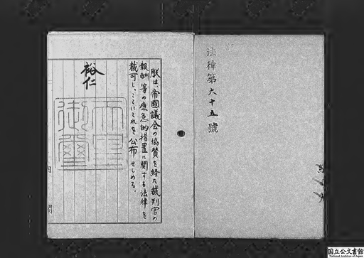 - 裁判官の報酬等の応急的措置に関する法律・御署名原本・昭和二十二年・法律第六五号