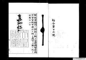 - 朕枢密顧問ノ諮詢ヲ経テ台湾総督府地方官官制中改正ノ件ヲ裁可シ茲ニ之ヲ公布セシム 嘉仁 内閣総理大臣伯爵 大隈重信 内務大臣子爵 大浦兼武 勅令第十六号 台湾総督府地方官官制中左ノ通改正ス 第三条中「千四百十三人」ヲ「千三百三十五人」ニ改ム 附則 本令ハ公布ノ日ヨリ之ヲ施行ス