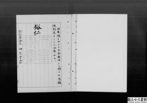 [簿冊]「日本国とアメリカ合衆国との間の小包郵便約定・御署名原本・昭和三十四年・第十二巻止・条約第一一号」(御38911100)、国立公文書館デジタルアーカイブ、https://www.digital.archives.go.jp/file/674114(参照 2026-04-11)