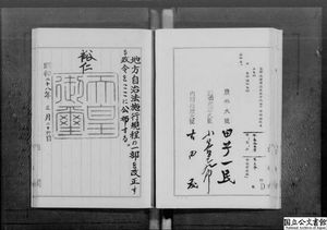 [Files] "地方自治法施行規程の一部を改正する政令・御署名原本・昭和二十八年・政令第四一号", 御35022100, National Archives of Japan Digital Archive, https://www.digital.archives.go.jp/file/en/676895(accessed 2026-04-11)