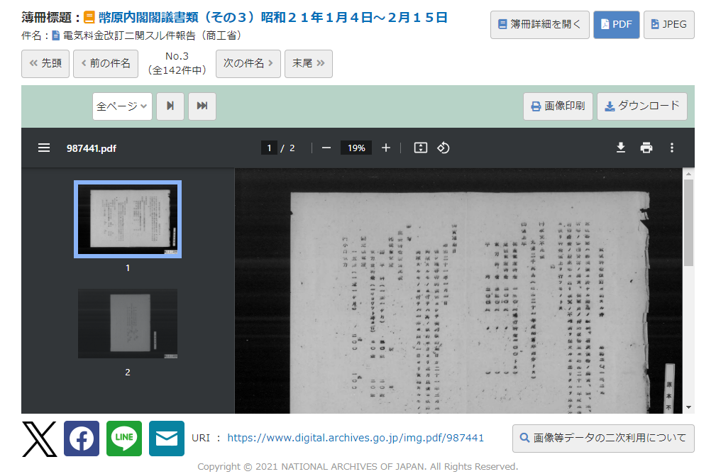 国立公文書館デジタルアーカイブでは、JPEG形式での画像閲覧ページにURIが付与しています。