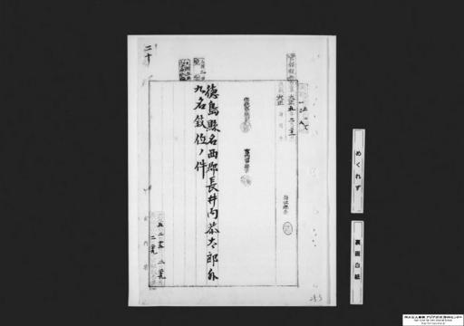 件名:徳島県名西郡長井内恭太郎外九名叙位ノ件○山林事務官補武田久雄...