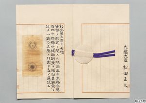 明治三十年勅令第百四十四号(貨幣ノ形式)中改正・御署名原本・明治三十一年・勅令第二百十七号
