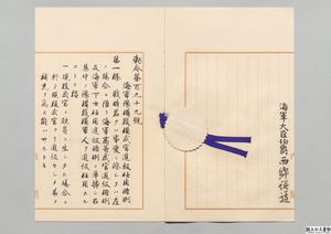 [簿冊]「海軍予備後備武官進級任用条例・御署名原本・明治二十七年・勅令第百九十九号」(御01851100)、国立公文書館デジタルアーカイブ、https://www.digital.archives.go.jp/file/156818