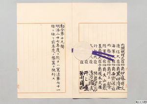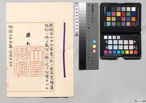 [簿冊]「明治二十七年度ニ於テ前年度予算施行・御署名原本・明治二十七年・勅令第十九号」(御01671100)、国立公文書館デジタルアーカイブ、https://www.digital.archives.go.jp/file/159344