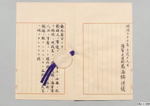[簿冊]「鎮守府艦団隊部定員ノ外軍人軍属臨時服務ノ件・御署名原本・明治二十七年・勅令第百二十三号」(御01775100)、国立公文書館デジタルアーカイブ、https://www.digital.archives.go.jp/file/159401