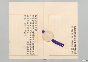 明治二十六年勅令第五号(文武官及雇員俸給中ヨリ製艦費補足ノ件)第二条中追加・御署名原本・明治二十七年・勅令第百十六号