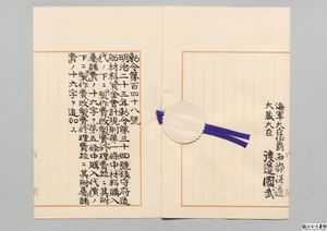 [簿冊]「鎮守府造船材料資金会計規則第一条第五条中追加・御署名原本・明治二十七年・勅令第百四十八号」(御01800100)、国立公文書館デジタルアーカイブ、https://www.digital.archives.go.jp/file/159492