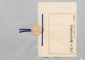 [簿冊]「貴族院子爵議員補闕選挙・御署名原本・明治三十八年・詔勅十二月十三日」(御06052100)、国立公文書館デジタルアーカイブ、https://www.digital.archives.go.jp/file/159771