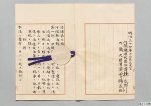 [簿冊]「沖縄県酒類出港税則中改正・御署名原本・明治三十八年・法律第六号」(御06059100)、国立公文書館デジタルアーカイブ、https://www.digital.archives.go.jp/file/159774