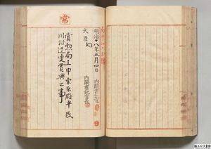 [件名・細目]「東京府平民川村迂叟ヘ褒章授与ノ件」(公03898100-01300)、国立公文書館デジタルアーカイブ、https://www.digital.archives.go.jp/item/3626957