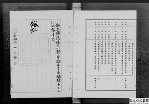 [簿冊]「海上運送法の一部を改正する法律・御署名原本・昭和三十四年・第二巻・法律第一号」(御38305100)、国立公文書館デジタルアーカイブ、https://www.digital.archives.go.jp/file/674204
