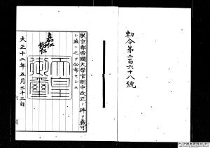 [Files] "京都帝国大学官制中改正・御署名原本・大正十二年・勅令第二百六十八号", 御14372100, National Archives of Japan Digital Archive, https://www.digital.archives.go.jp/file/en/158762