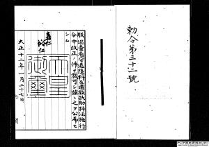 [Files] "巡査看守退隠料及遺族扶助料法施行令第二条中改正・御署名原本・大正十二年・勅令第三十二号", 御14136100, National Archives of Japan Digital Archive, https://www.digital.archives.go.jp/file/en/158821