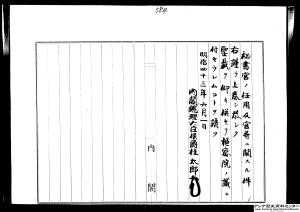 [件名・細目]「秘書官ノ任用及官等ニ関スル件」(枢A00039100-03700)、国立公文書館デジタルアーカイブ、https://www.digital.archives.go.jp/item/1741183(参照 2026-04-11)
